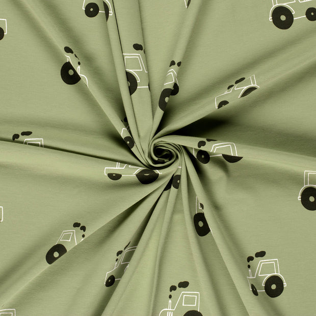 Cotton Jersey Printed Tractors Olive Green