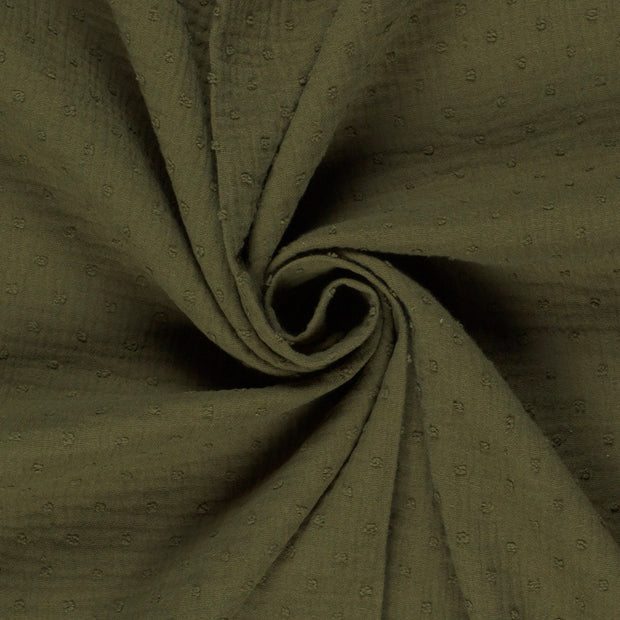 Double Gauze Dobby Dots Khaki Green