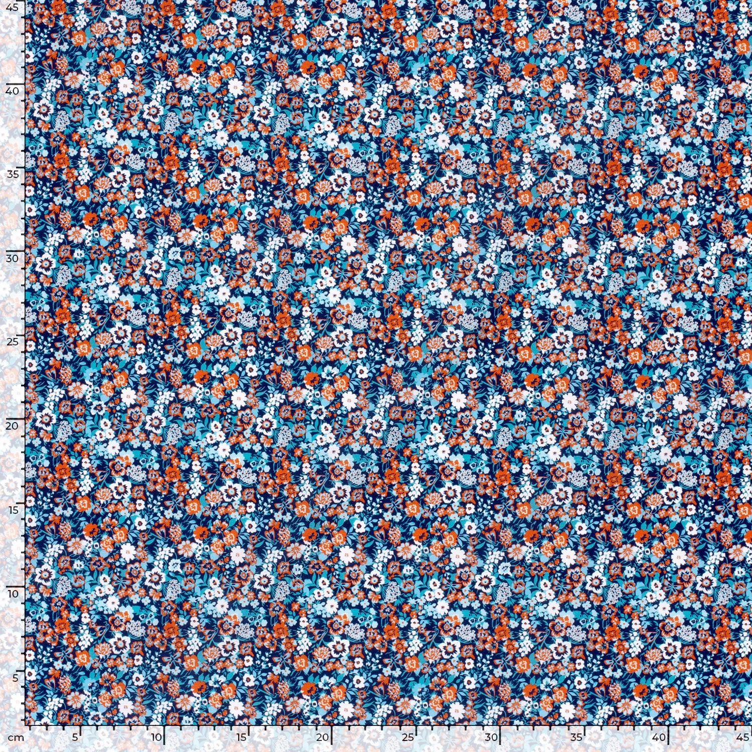 Cotton Poplin Printed Flowers Navy