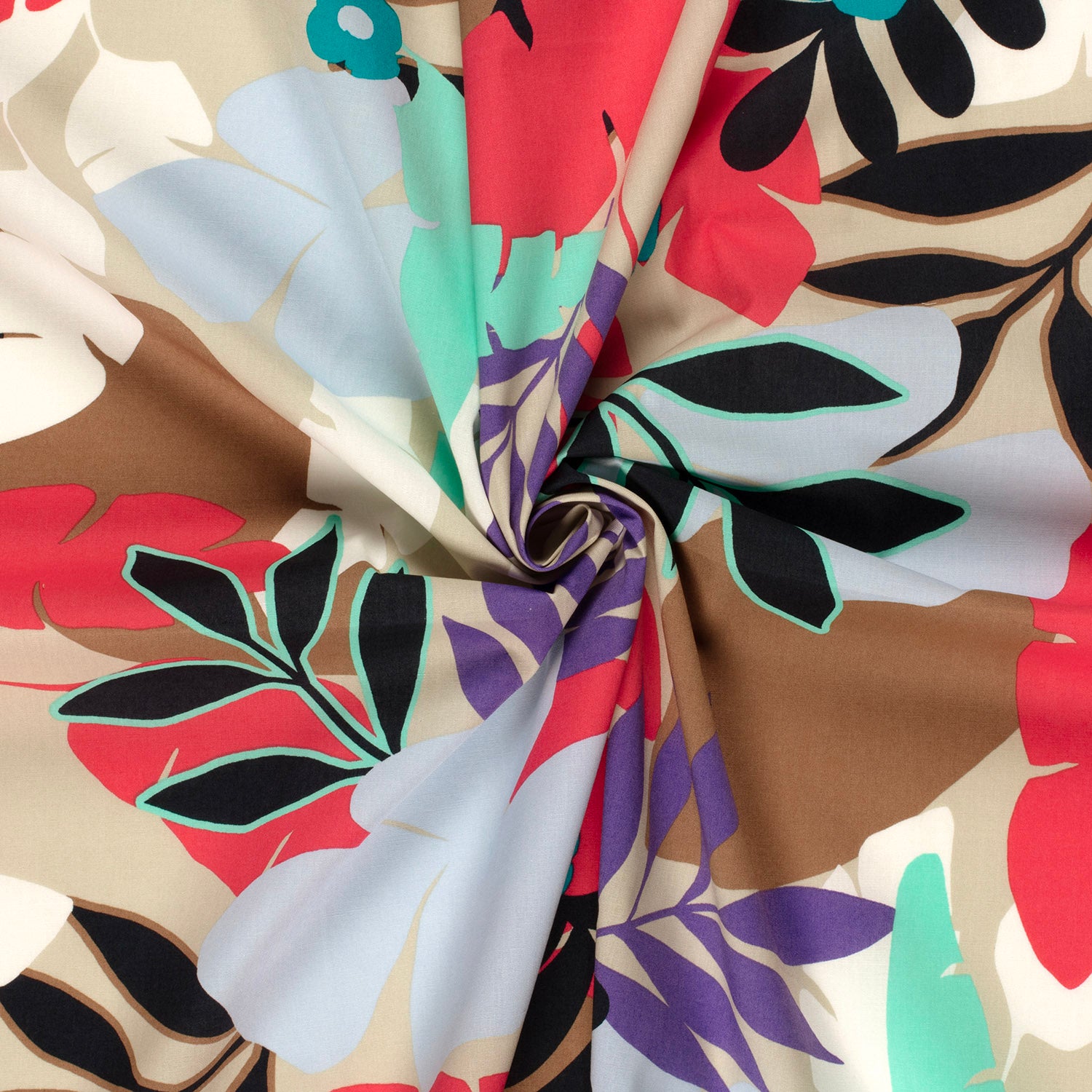Cotton Satin Printed Abstract Dark Red